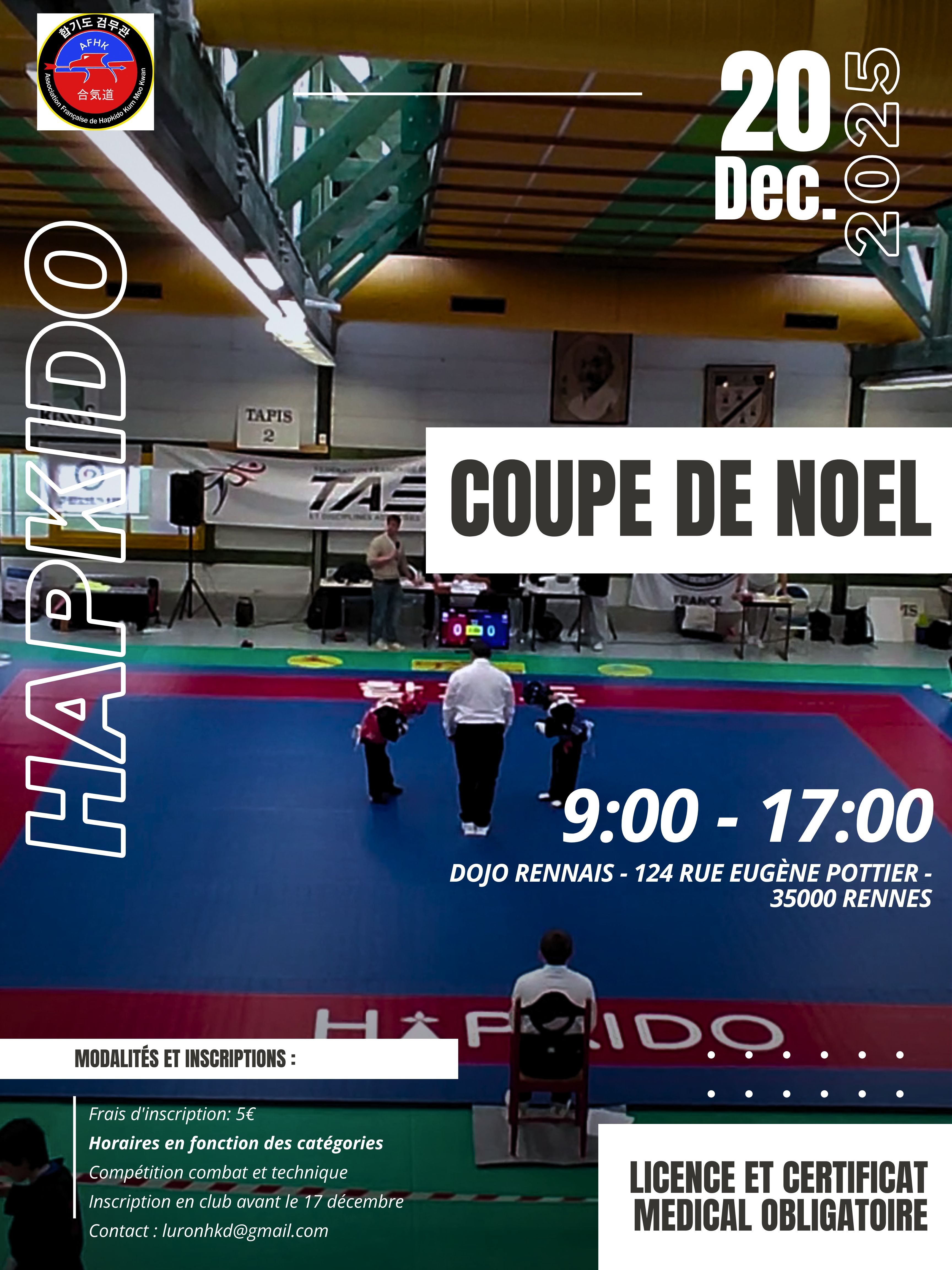 La Coupe de Noël HAPKIDO arrive.🏆 Elle aura lieu au Dojo rennais tout au long de la journée du samedi 20 décembre.